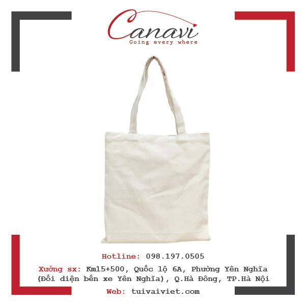 TÚI VẢI VIỆT CANAVI Được thành lập vào năm 2015 và có trụ sở chính đặt tại thành phố Hà Nội, chuyên sản xuất các sản phẩm túi vải không dệt, túi vải bố - canvas, túi vải dù, Balo dây rút... Túi Vải Canavi có diện tích nhà máy 1500 mét vuông. Các cơ sở sản xuất của chúng tôi bao gồm xưởng sản xuất túi in kỹ thuật số, xưởng cắt và xưởng May.