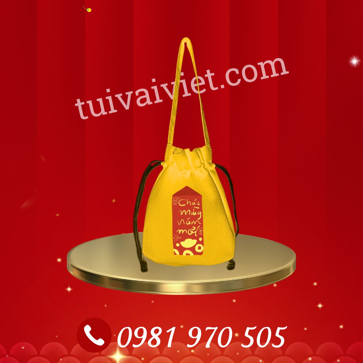 Hãy để những lời chúc năm mới thêm phần ý nghĩa với Túi Vải Dây Rút Đựng Lì Xì vải canvas màu vàng, món quà nhỏ gọn nhưng đầy tinh tế!