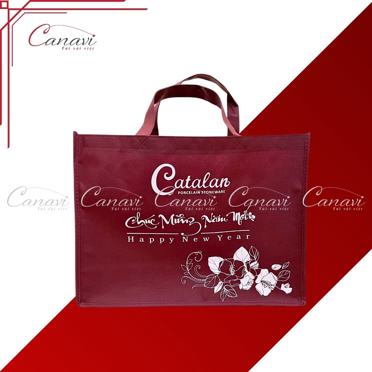 Mẫu túi vải không dệt TVQT9 mang tông đỏ đô đặc trưng của mùa Tết, thể hiện sự may mắn và thịnh vượng.