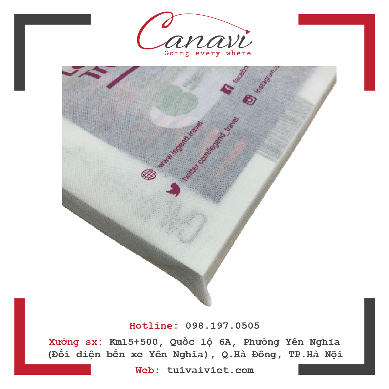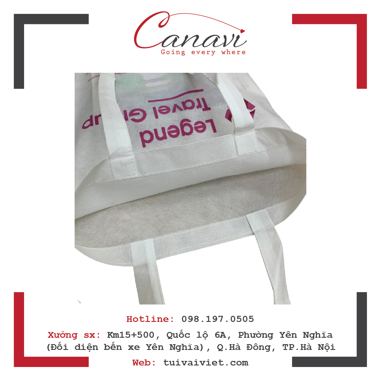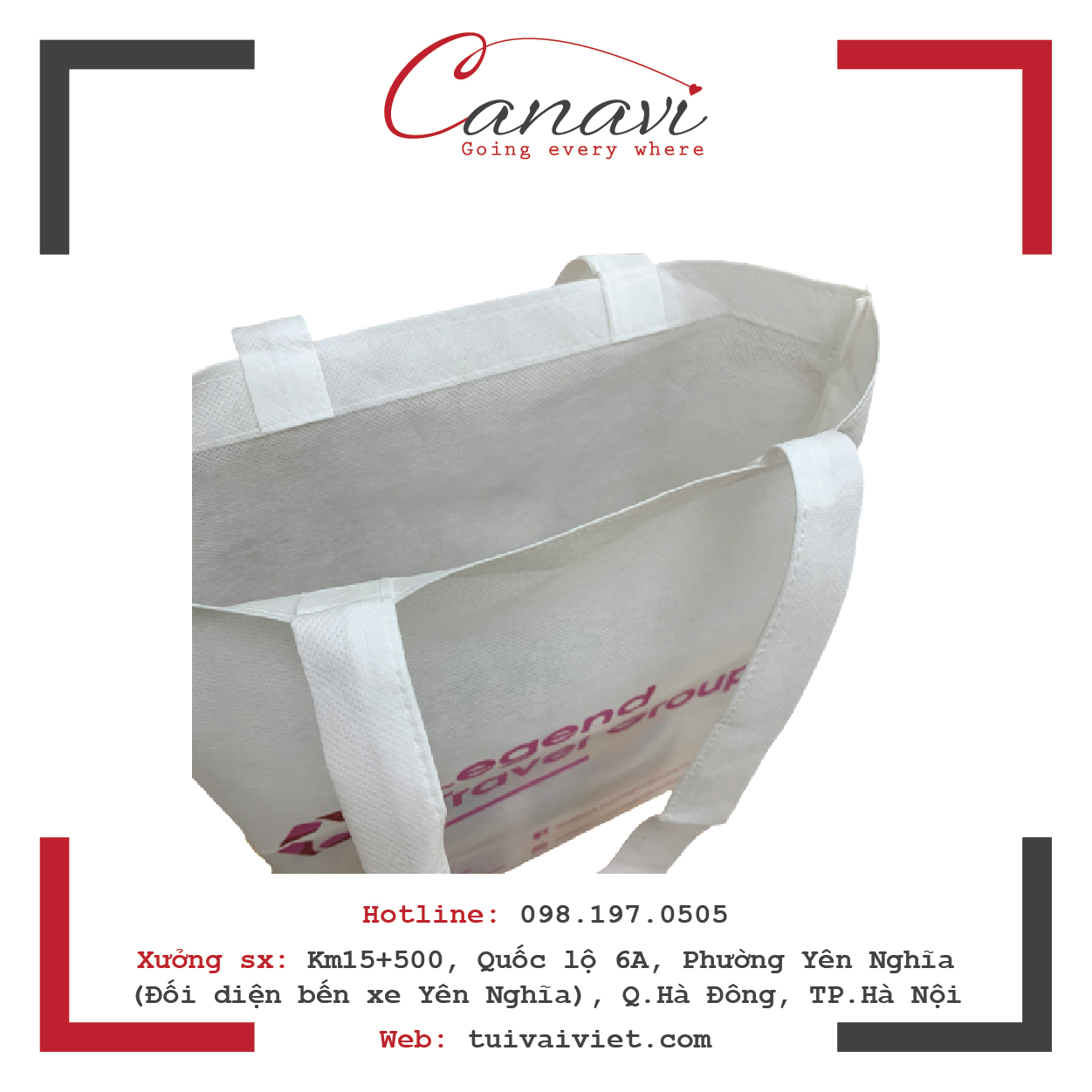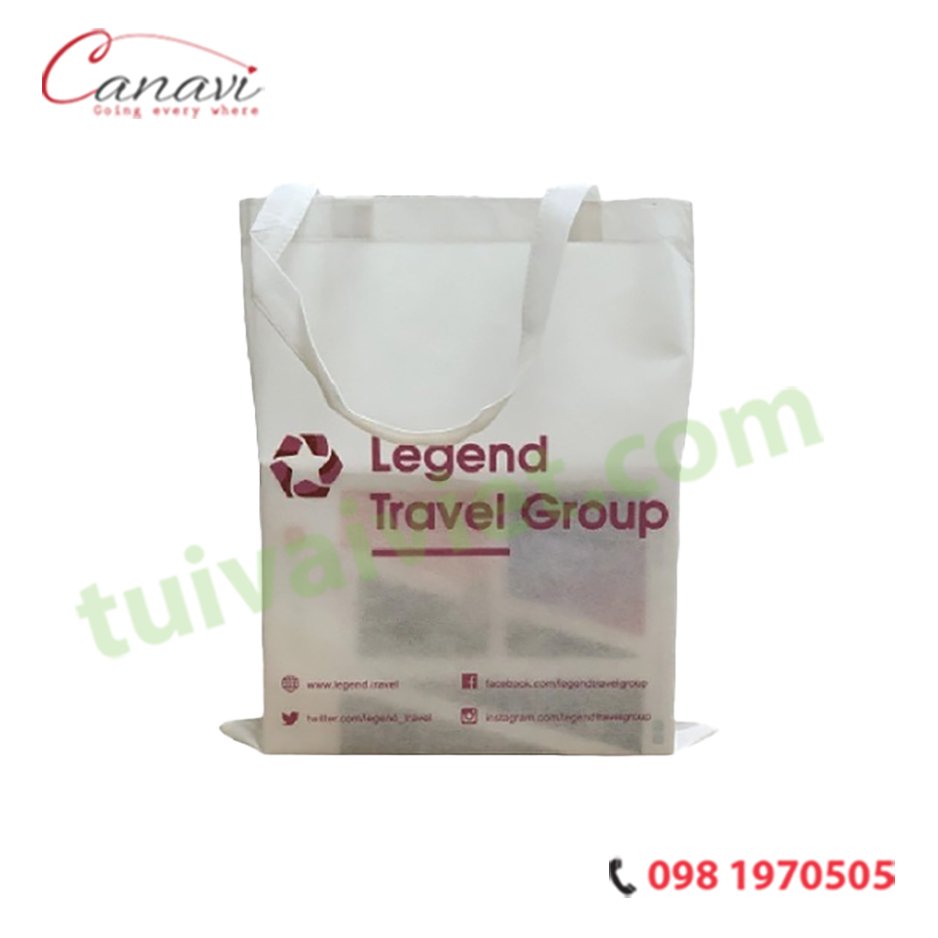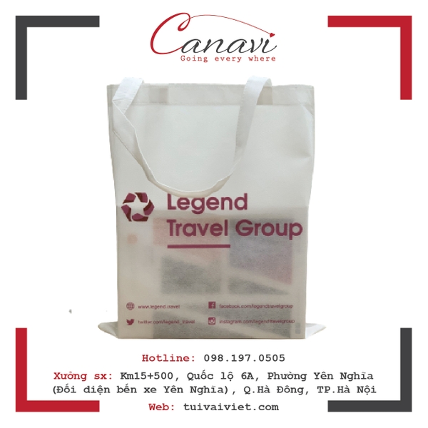 Túi vải Việt tự hào là đơn vị cung cấp túi vải không dệt hỗ trợ cho Legend Travel Group. Mẫu TVKD013 thuộc loại túi không may gia công. Định lương 80gsm rất chắc chắn, có thể chịu tải trọng lượng đến 5kg.